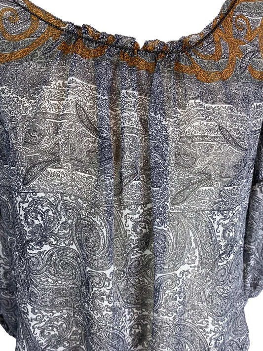 Medium Studio M Women's Sheer Black White Paisley Blouse Banded Sleeves and Hem