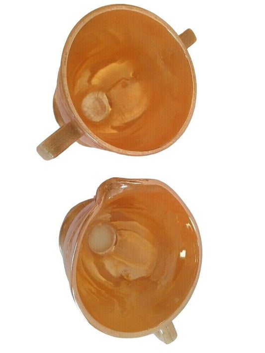 Fire King Peach Laurel Leaf Lusterware Creamer and Sugar Bowl Fire King by Anchor Hocking 1960s Mid Century Orange Lustreware