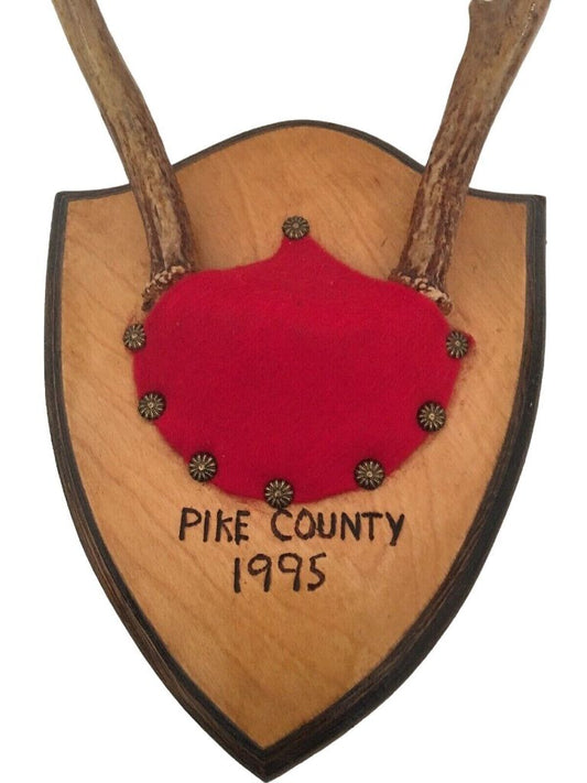 Wall Mount Plaque Deer Antler Pike County 1995 8" x 10" Rustic Decor Cabin Kitsch
