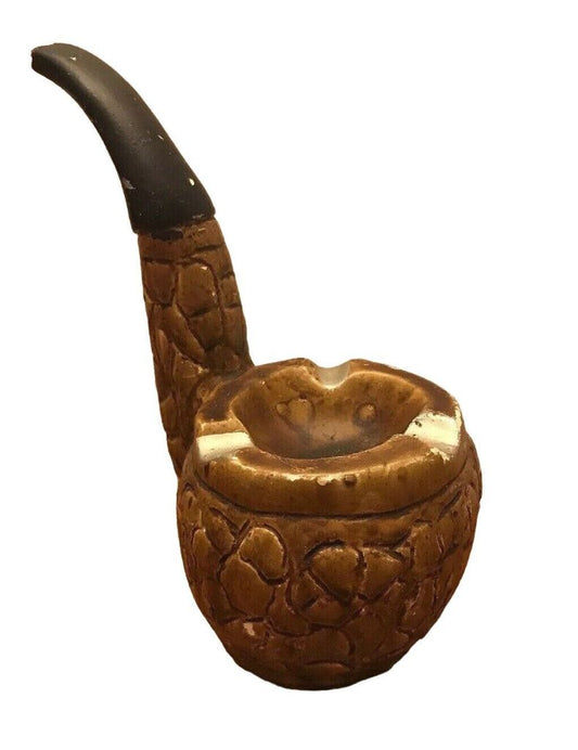 Vintage Painted Ceramic Ashtray Pipe Shaped Brown Black 7"h x 6"w