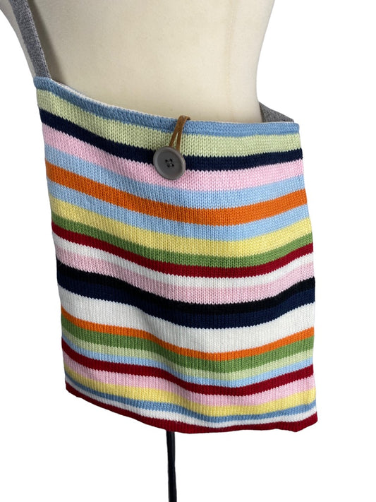 Striped Sweater Knit Crossbody Bag Button Closure Multicolor