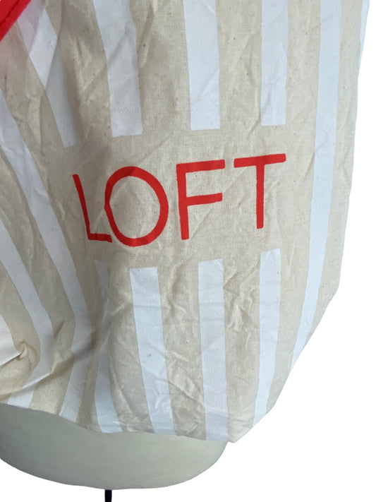 LOFT Cotton Tote Back Tan and White Stripe Orange Handles