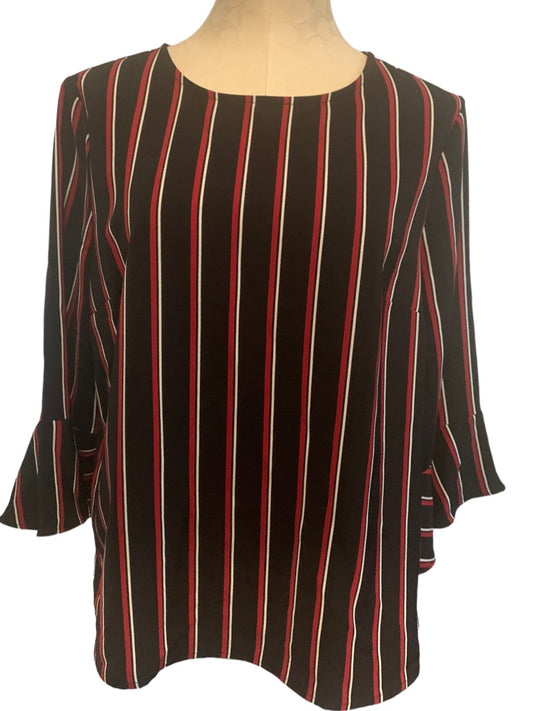 Large Tommy Hilfiger Black Red Striped Pullover Blouse Bell Sleeve