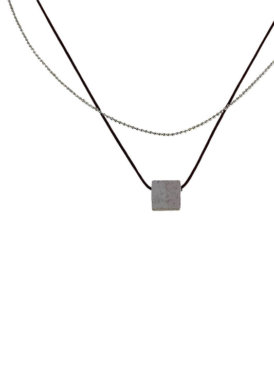 Delicate 18" Dual Strand Silvertone and Burgundy Necklace with Square Pendant