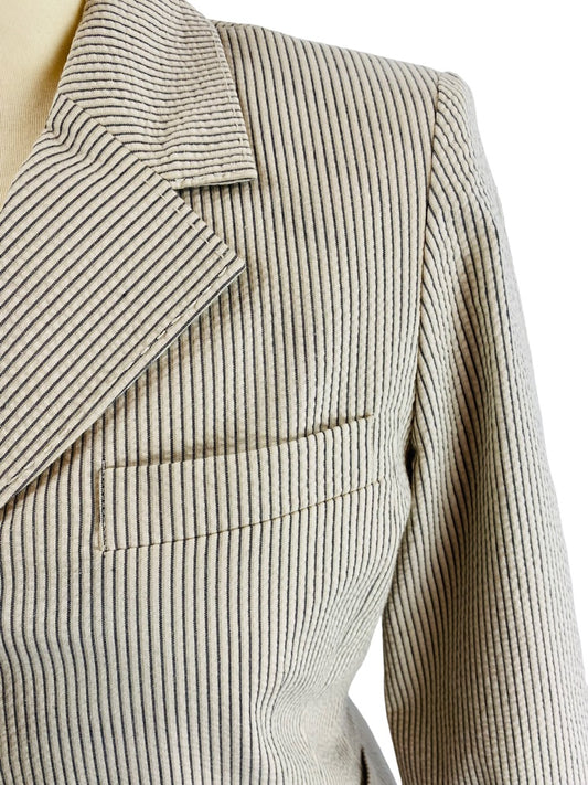 4 AK Anne Klein Stretch Women's 3 Button Lined Tan Seersucker Blazer