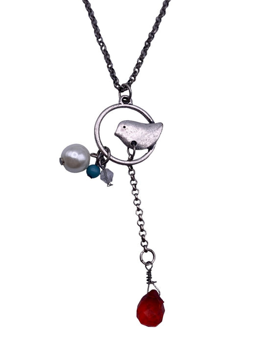 Me Too Accessories 18" Pendant Necklace Silvertone with Bird New