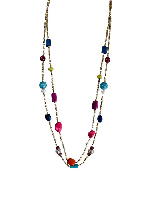 Chico's Goldtone Beaded 36" Dual Strand Clasp Necklace Multicolor Beading