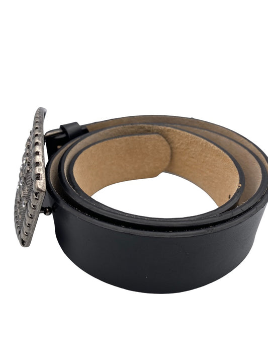 Medium Women's Black Leather Adjustable Belt Fits 32"-36" Waist 1 3/8" Width