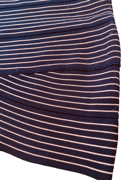 Small Freeway Women's Navy Blue Pink Stripe Bandage Skirt 17" Length