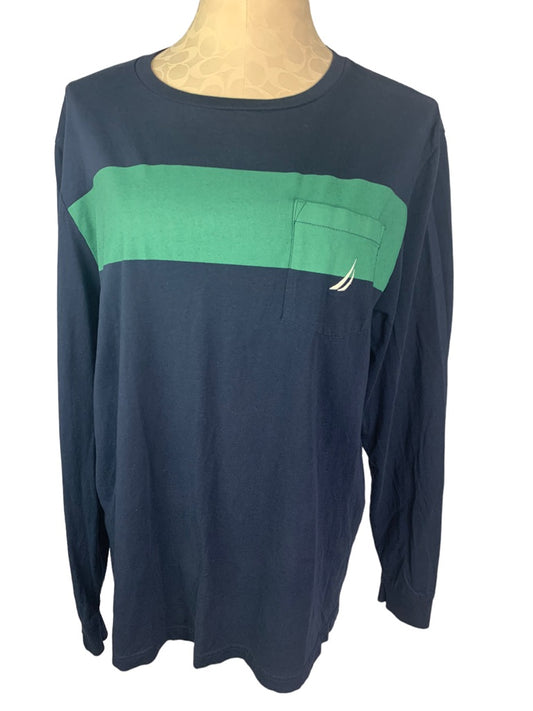 Large Nautica Blue Jersey Knit Women's Pullover Single Pocket Tshirt