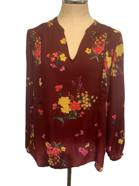 Large Old Navy Sheer Burgundy Floral Women's Pullover Blouse