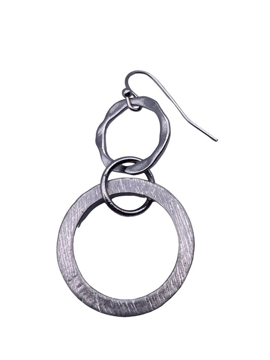 Silvertone Circle Drop Earrings 2" Dangle Pierced Hook