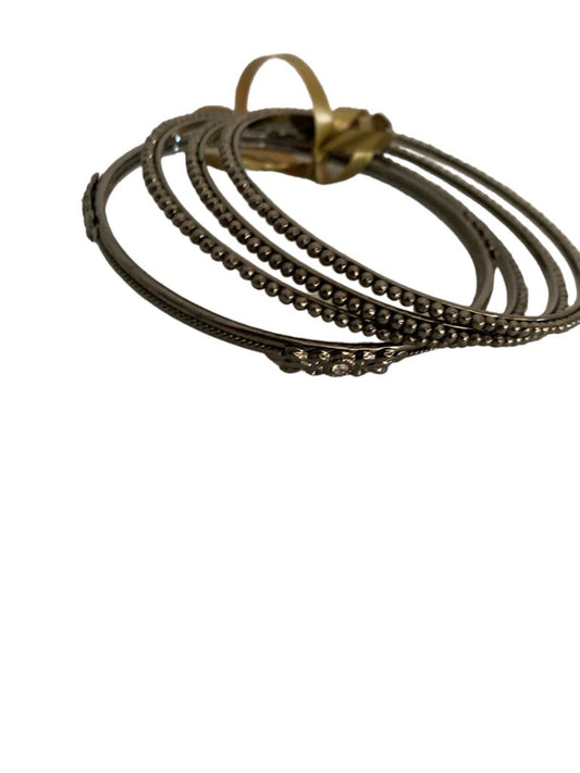 Set of 4 Antiqued Silvertone Bangle Bracelets Beaded Design and Twisted 2.5"d