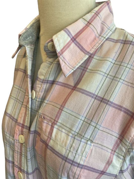 XS LL Bean Pastel Plaid Fleece Lined Flannel Shirt Women's