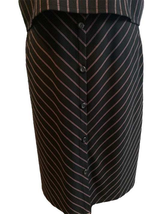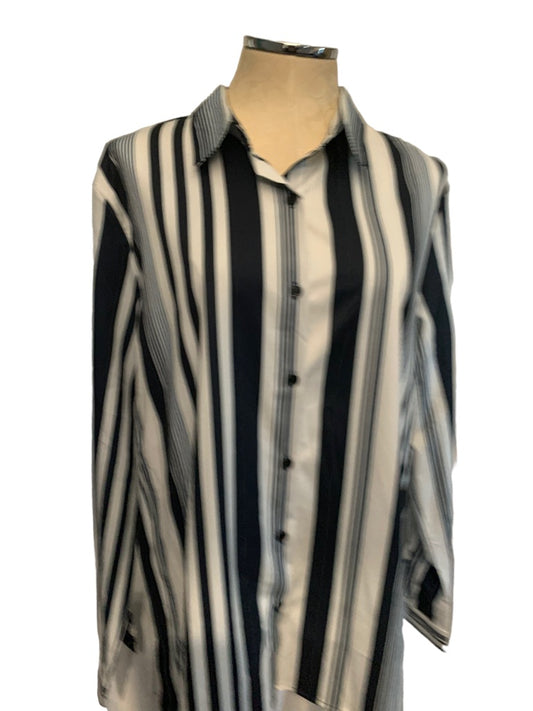 XL Unbranded Women's Button Up Dress Shirt Navy Blue White Vertical Stripe