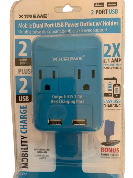 Xtreme Mobile Dual Port USB Power Outlet with Holder 2 Outlets 2 USB