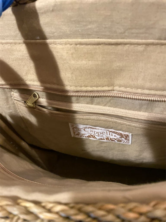 Cappelli Ombre Blue Ribbon Straw Bag Zip Top Braided Strap