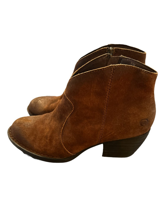 8.5 Born Brown Suede Stack Heel Side Zip Booties