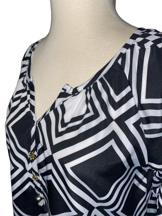 Medium Mudpie Black and White Diamond Pattern Tunic Blouse