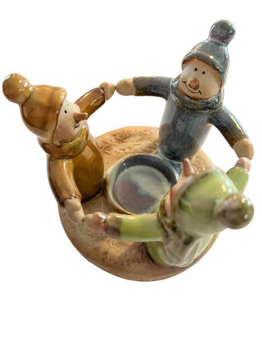 New Potters Garden Tea Light Candle Holder Circle of Snowmen Holiday Decor