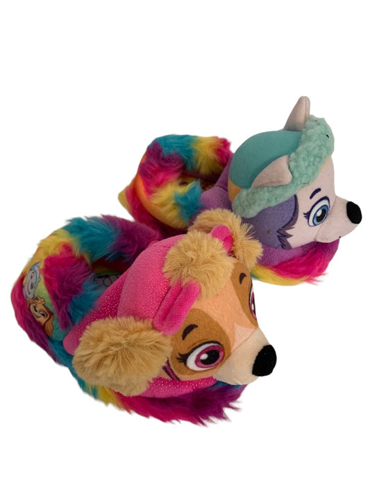 7-8 Paw Patrol Girls Pink Slippers Hard Non-Slip Bottom Sparkle Rainbow