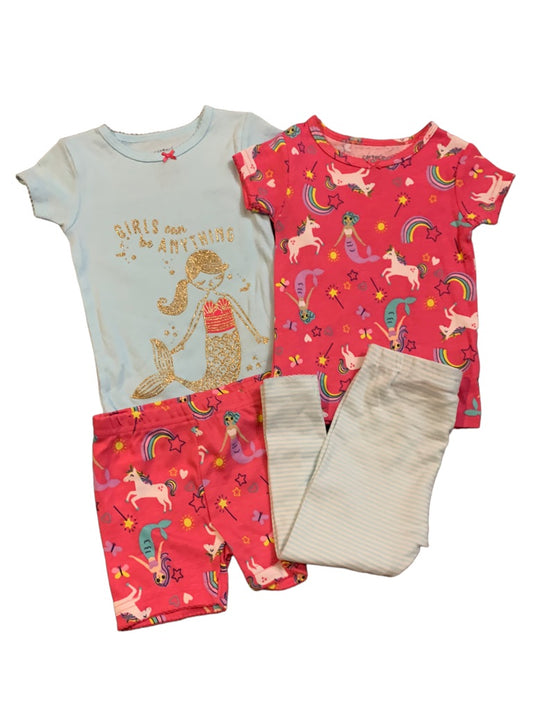 12 Months Carter's 4 Piece Pajama PJ Set Mermaid Unicorn "Girls Can be Anything"