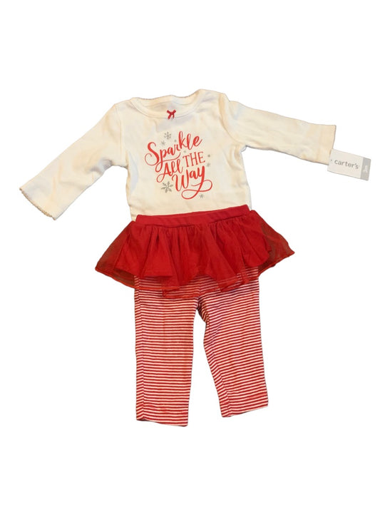 3 Months Carter's Baby 2 Piece Red White Girls Holiday Outfit "Sparkle All the Way"