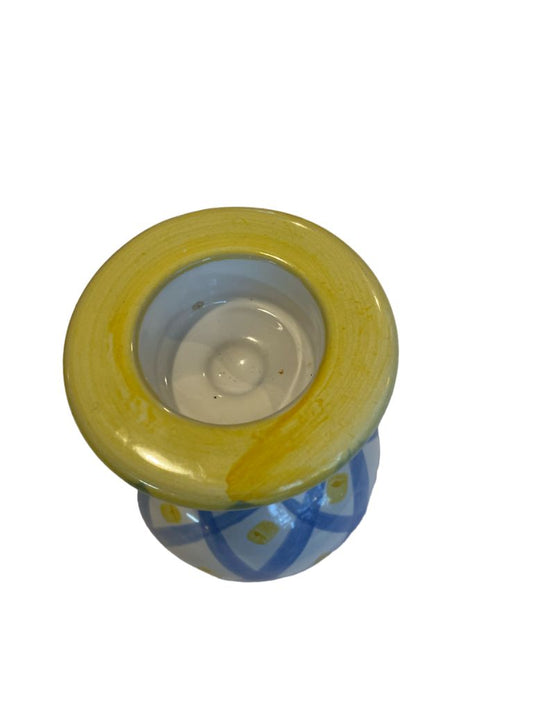 Small Painted Pottery Candle Holder Tealight Candlestick
