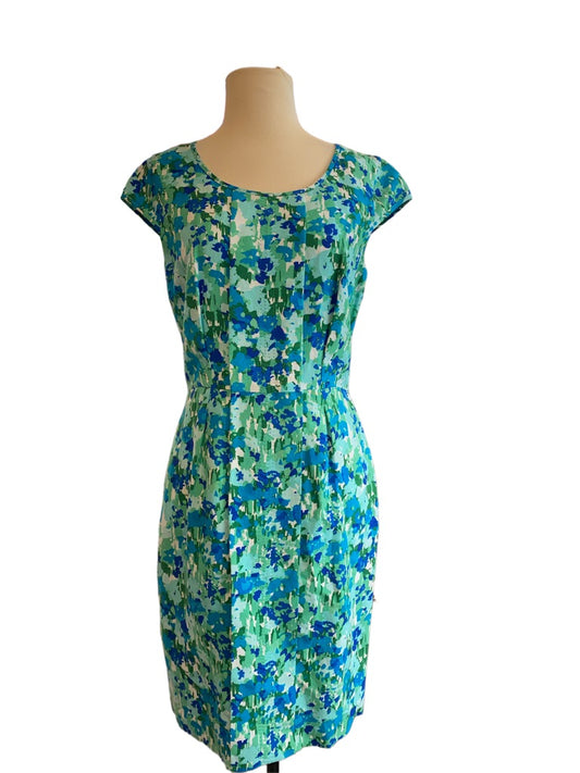 6 Calvin Klein Abstract Floral Cap Sleeve Sheath Dress Linen Blend