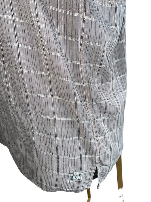 Medium REI Gray Black Windowpane Plaid Shirt sleeve Shirt Button Down