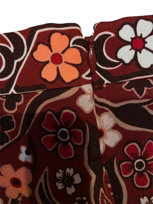 16 Banana Republic Burgandy Floral Full Knee Length Skirt NWT