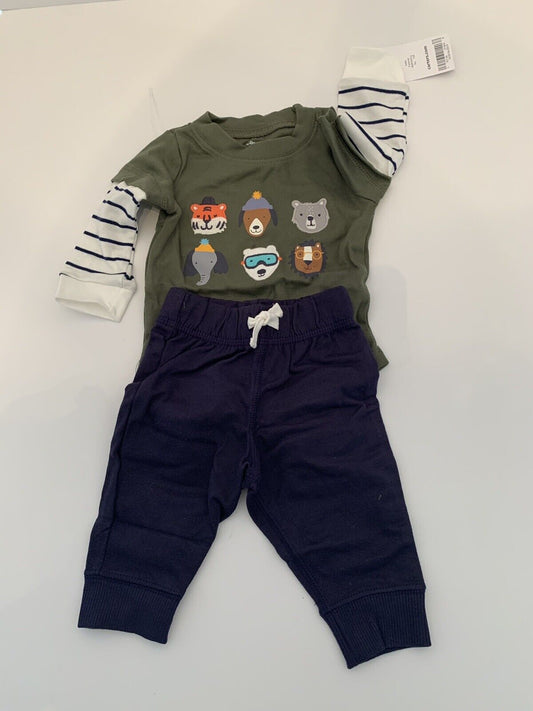 3 Months Carter's 2 Piece Pants and Shirt Animal Outdoor Theme Joggers