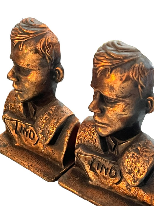 Vintage "Lindy" Aviator Charles Lindbergh Cast Metal Bookends Verona