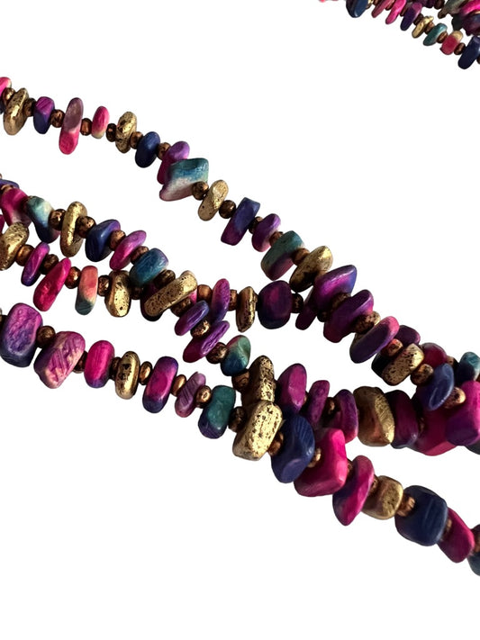 Multicolor 4 Strand Bead Necklace Painted Wood Pink Purple Gold