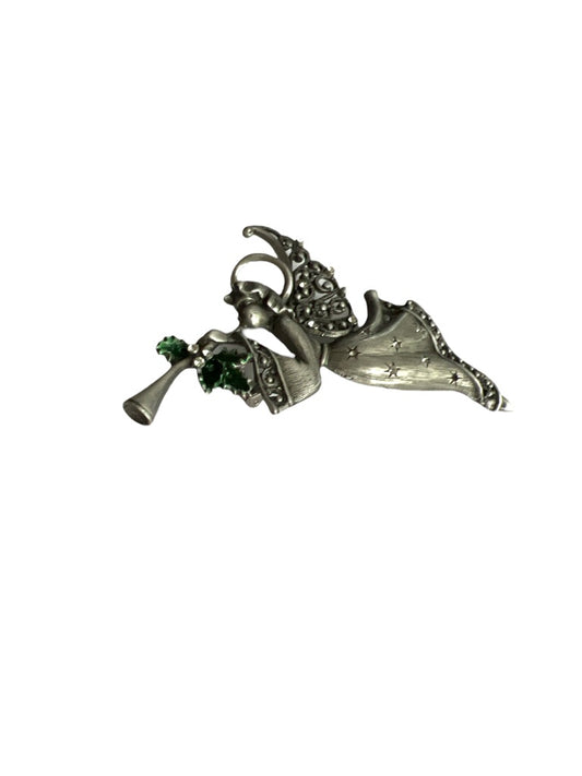 Jonette JJ Pewter Angel Brooch With Holly and Trumpet