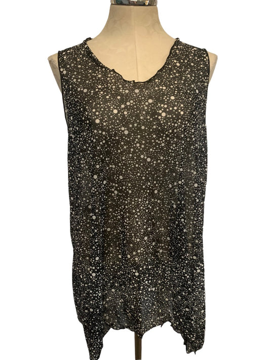 One Size Women's Sleeveless Mesh Black White Dot Lagenlook Shirt