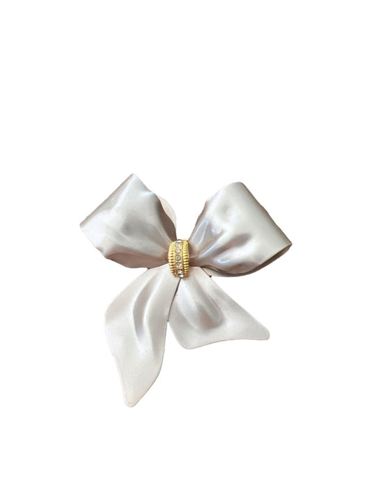 Blush Metallic Metal Bow Brooch Goldtone Rhinestone Center