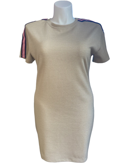 Large Fab'rik Tan and White Checked T-Shirt Dress