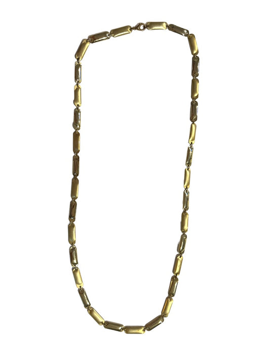 Goldtone 34" Matte and Shiny Rectangle Link Necklace