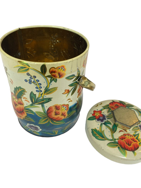 Murray Allen Lidded Tin Water Flower Handle England Candy Tea