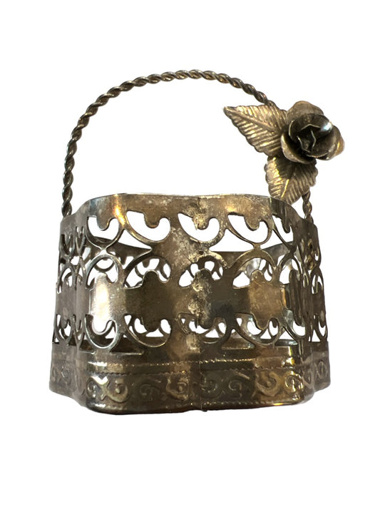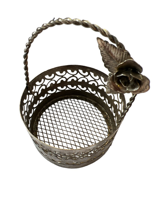 Vintage Silvertone Metal Wire Small Baskets Set of 2 Diamond & Round
