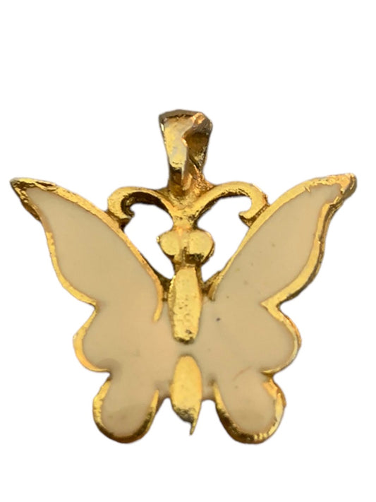 Vintage Goldtone Butterfly Pendant Ivory Enameled Small 1"
