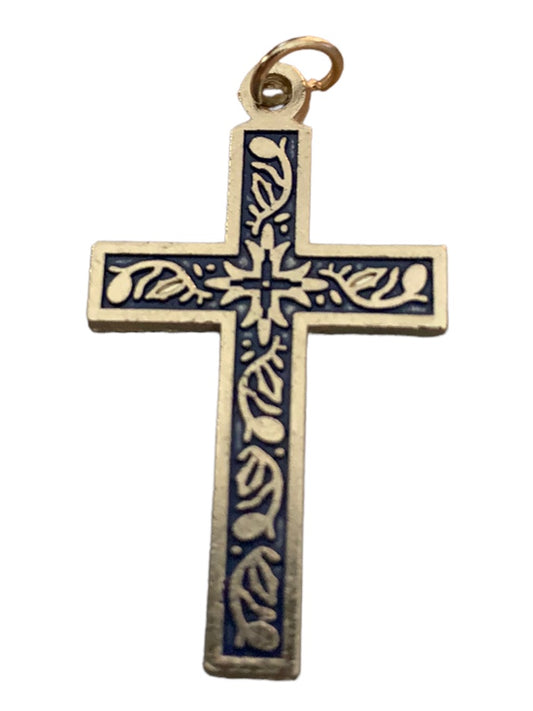 Vintage 1 1/4" Silvertone Pendant Cross Blue Embossing Jewelry for Necklace