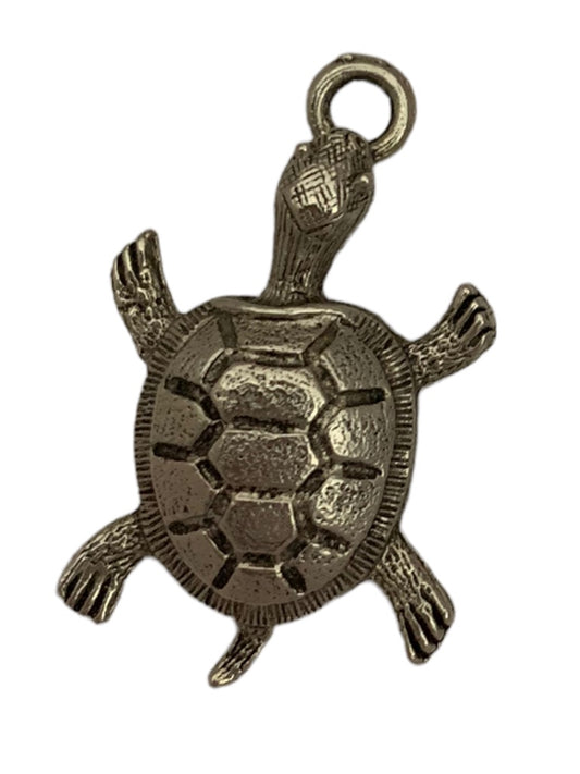 Vintage Silvertone Turtle Pendant Charm 1.5"h
