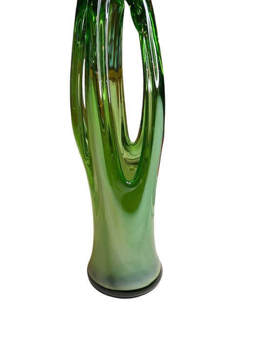 MidCentury Art Glass Sculpture Handblown Green 15" Maexsa Style
