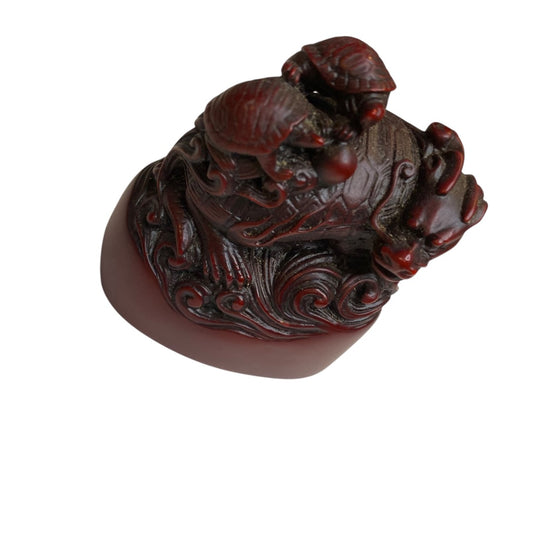 Vintage Red Resin Paperweight Figurine Dragon Turtles 2.5"