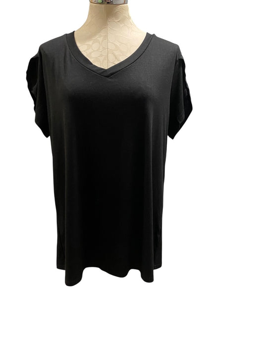 XL Womens Black V-Neck Tshirt Petal Sleeve Soft