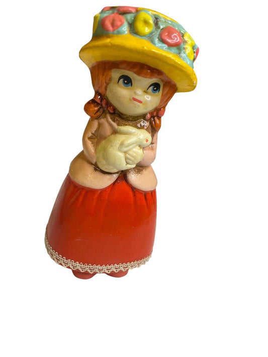 Vintage Napco Japan Papier Mache Girl Bunny Figurine M-8364 6"