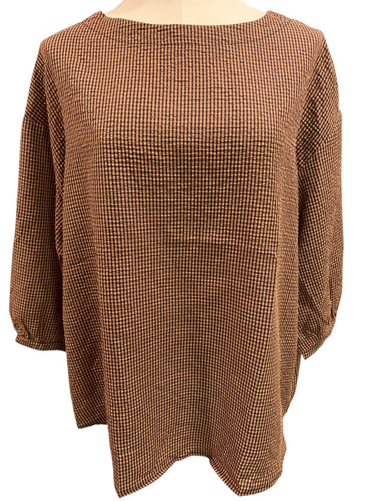 XL Shein Womens Pullover Blouse Shirt Brown Black Check