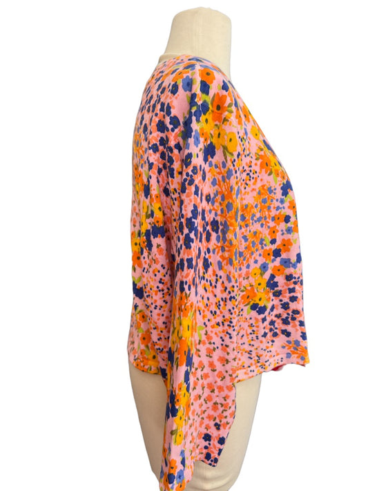 XL Isaac Mizrahi Live Floral Crop Long Sleeve Cardigan Open Cardy New
